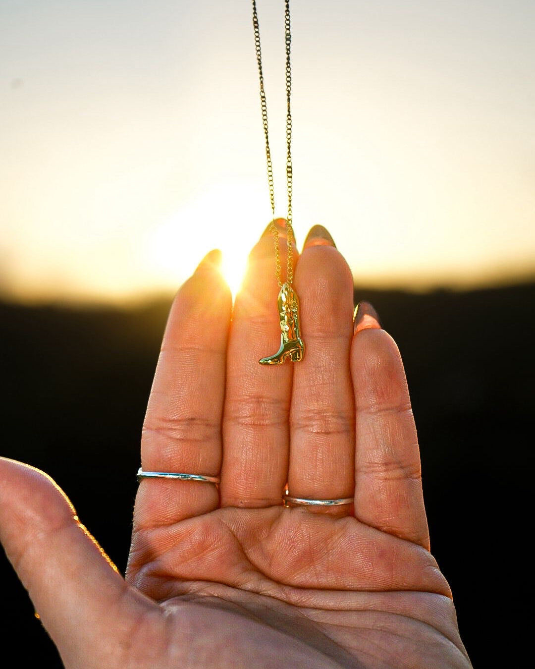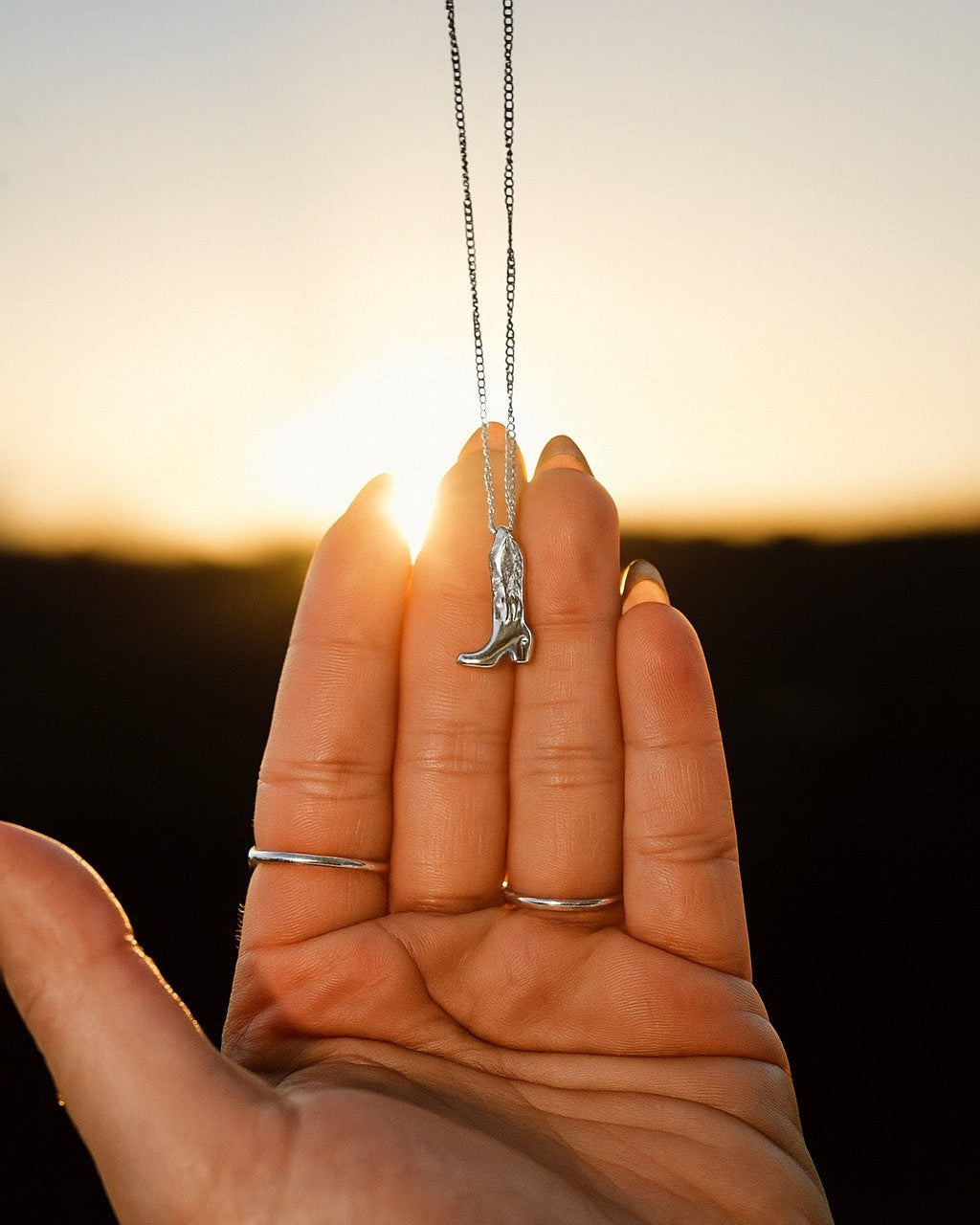 A refined necklace that blends western charm with modern elegance. Its delicate cowboy-boot pendant adds character and sophistication, creating a subtle yet striking piece.
