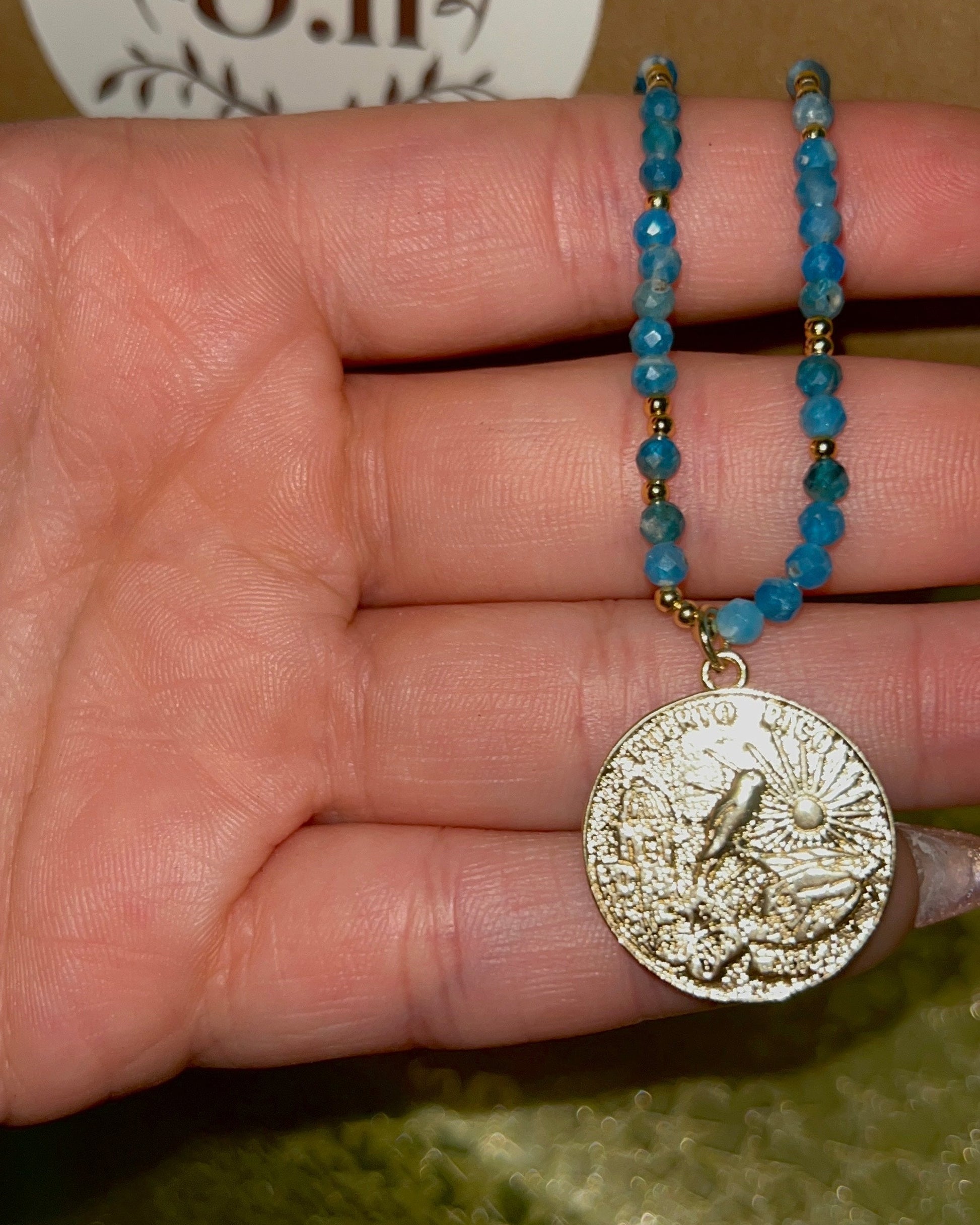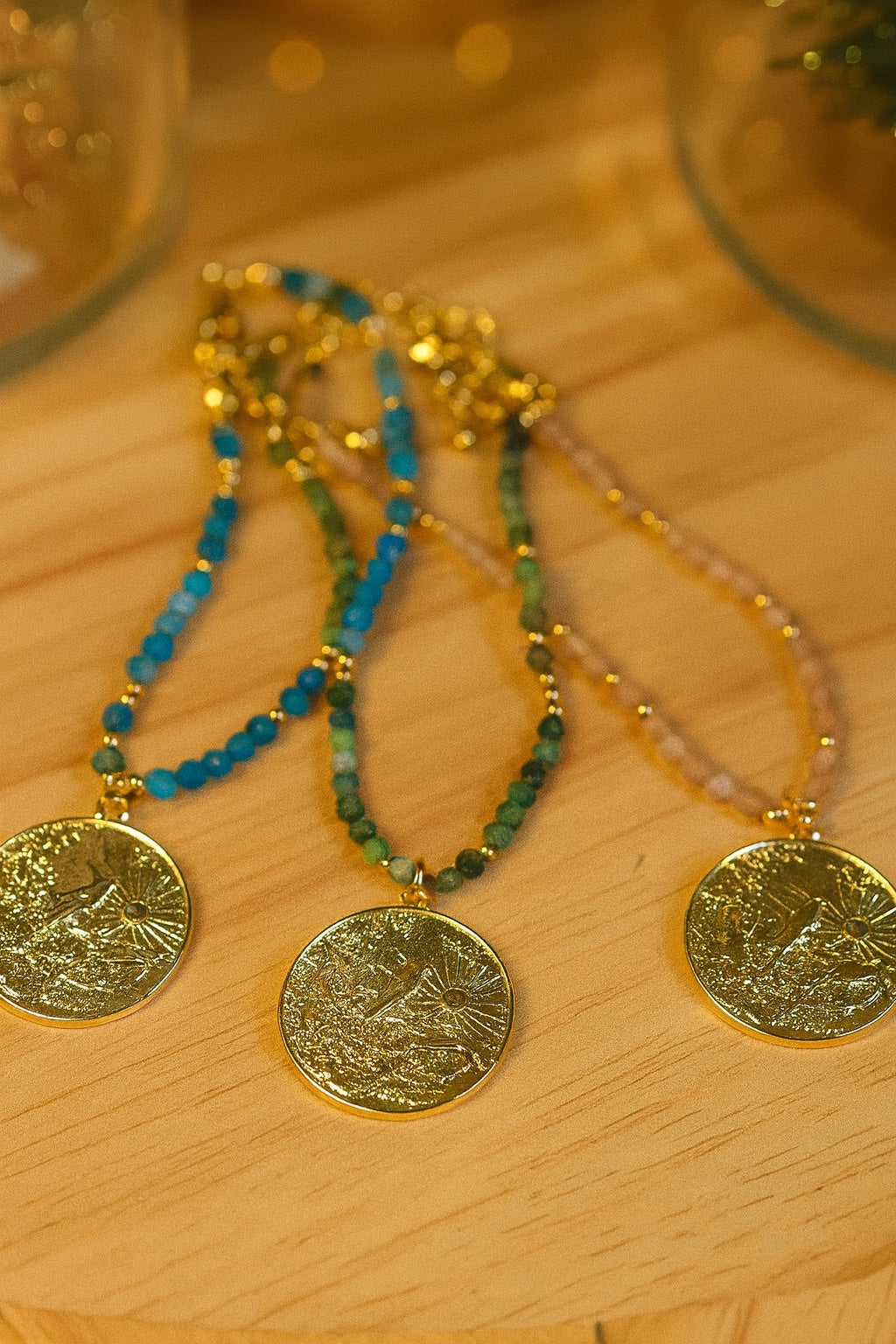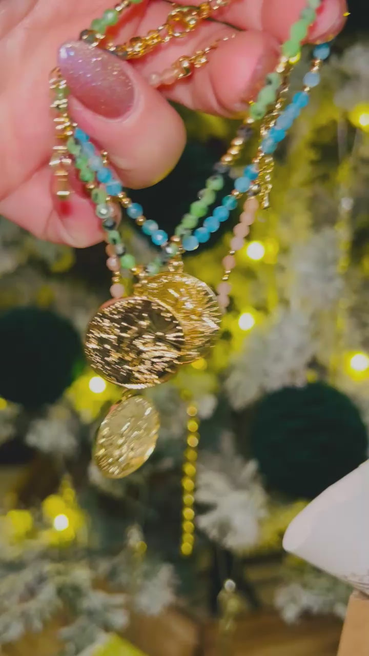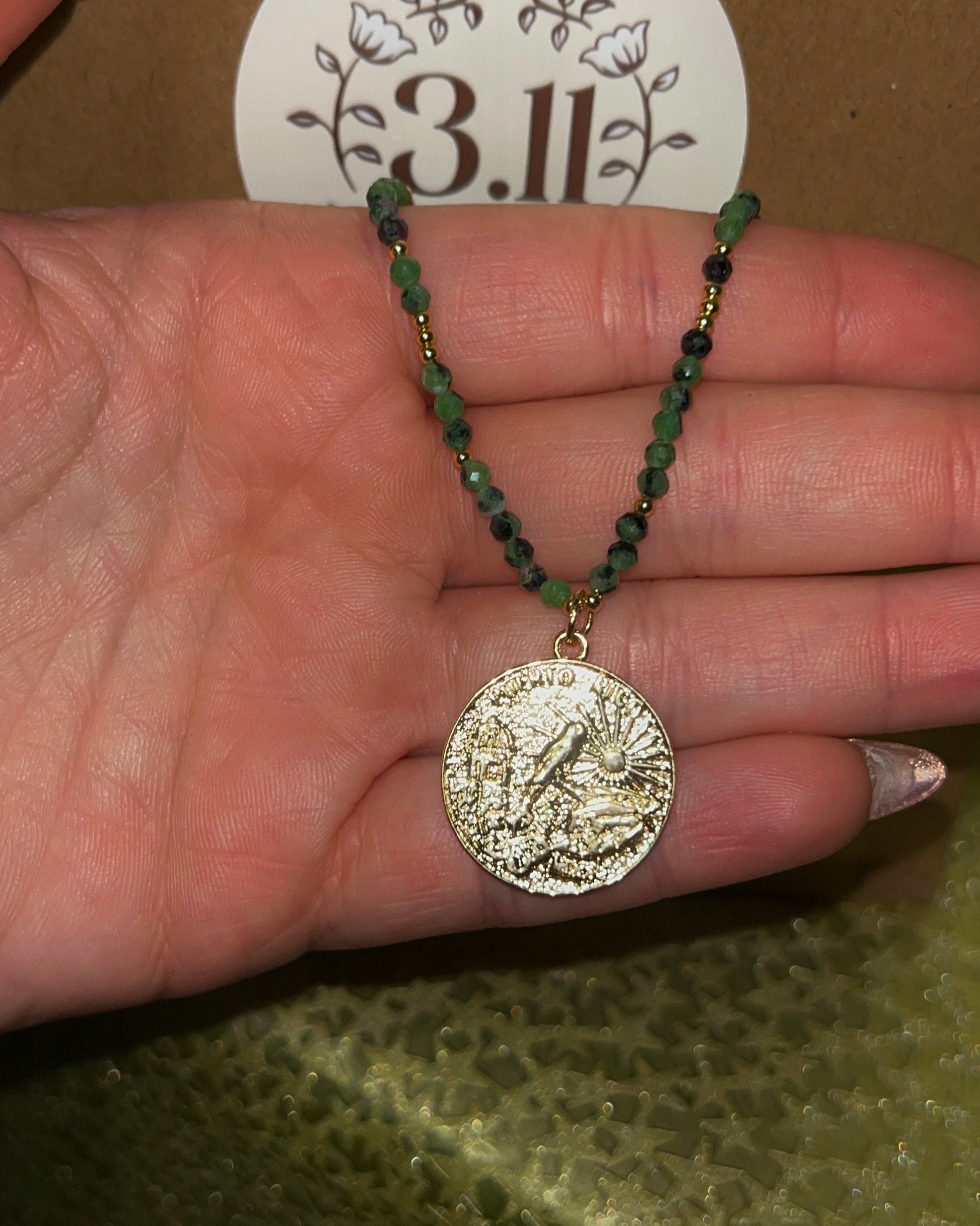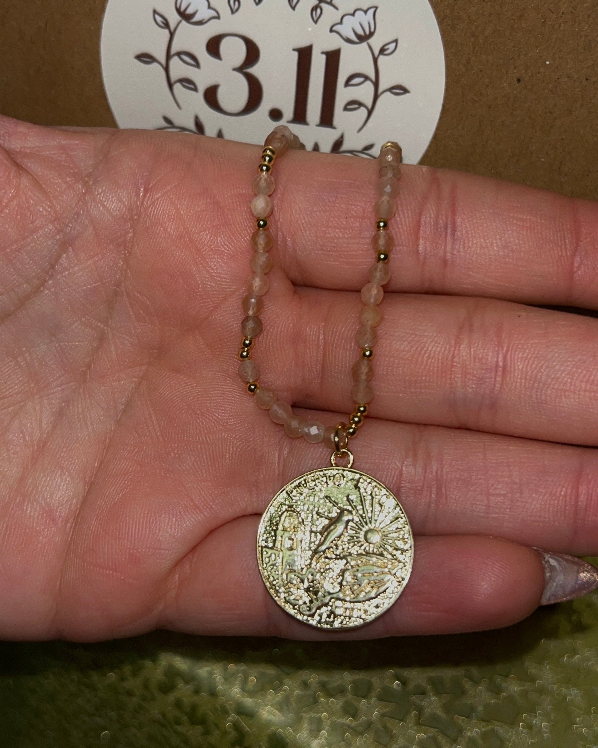 A stone bracelet featuring a finely detailed gold Puerto Rico pendant, blending natural beauty with a touch of refined elegance.
